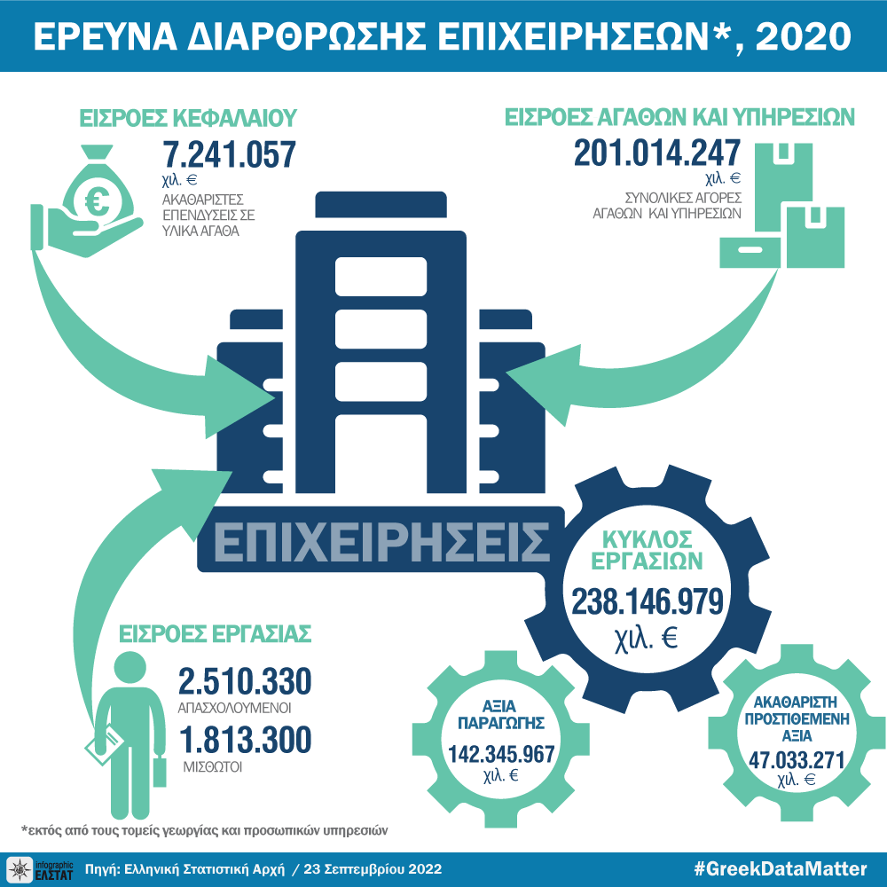 Η Ελληνική Στατιστική Αρχή (ΕΛΣΤΑΤ) ανακοινώνει στοιχεία για την Έρευνα Διάρθρωσης Επιχειρήσεων έτους 2020.