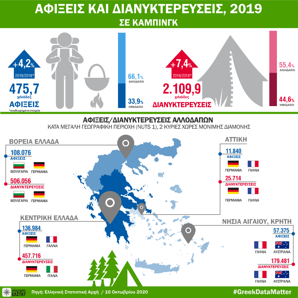 Infographic: Αφίξεις, διανυκτερεύσεις σε Κάμπινγκ