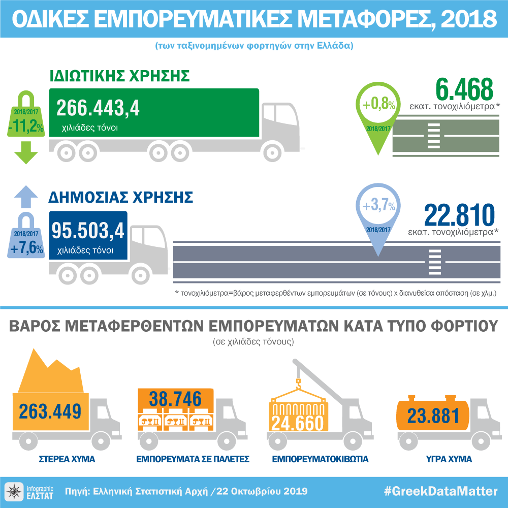 ΕΛΣΤΑΤ, Οδικές Εμπορευματικές Μεταφορές. Ημερομηνία δημοσίευσης: 22.10.2019