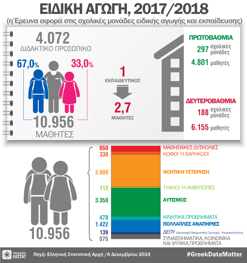 ΕΛΣΤΑΤ, Ειδικής Αγωγής και Εκπαίδευσης. Ημερομηνία δημοσίευσης: 6.12.2019