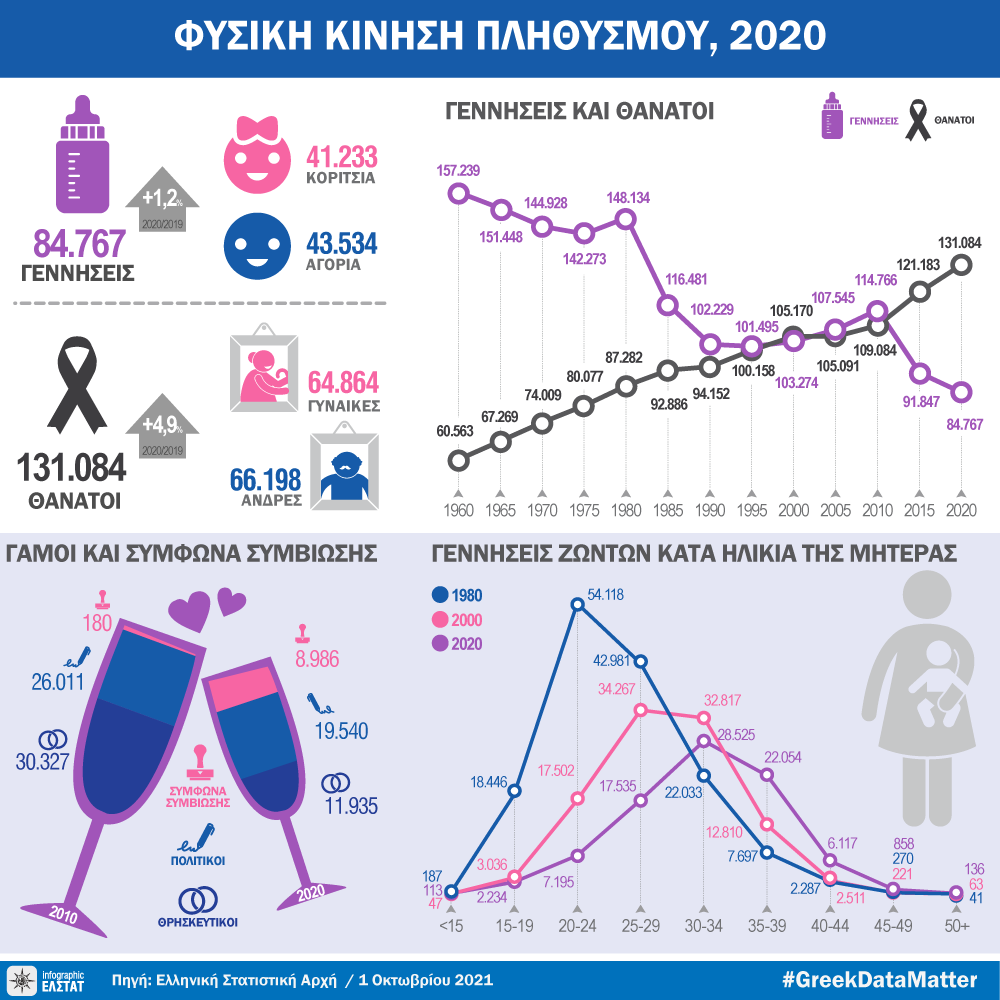 ΕΛΣΤΑΤ, Φυσική Κίνηση Πληθυσμού. Ημερομηνία δημοσίευσης:1.10.2021