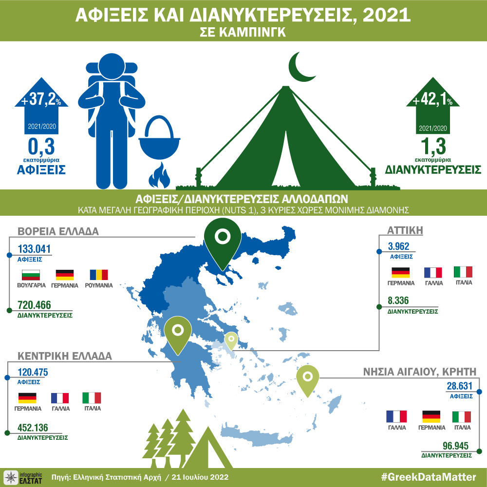 Infographic: Αφίξεις, διανυκτερεύσεις σε Κάμπινγκ