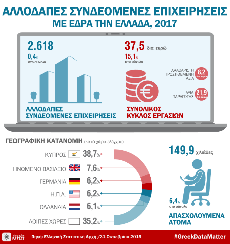 ΕΛΣΤΑΤ, Επιχειρήσες στην Ελλάδα με ξένο μέτοχο. Ημερομηνία δημοσίευσης: 31.10.2019