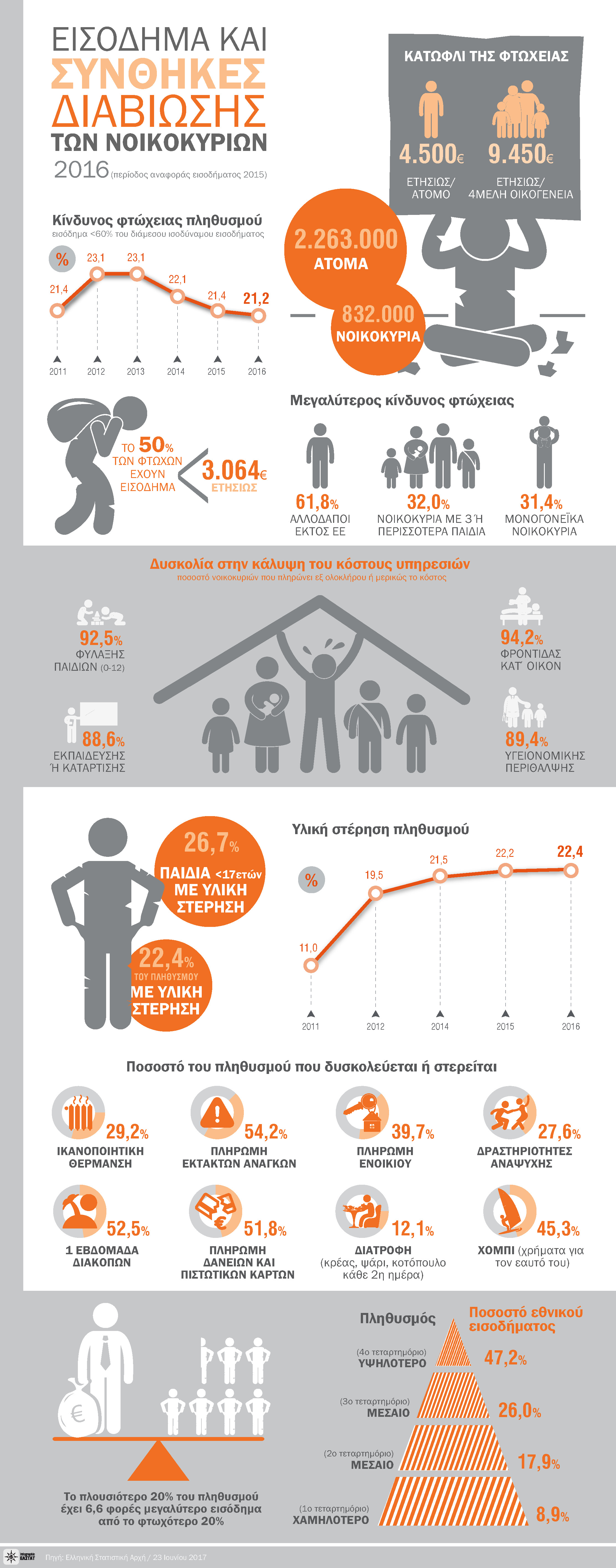 ΕΛΣΤΑΤ, Εισόδημα και Συνθήκες Διαβίωσης των Νοικοκυριών (SILC). Ημερομηνία δημοσίευσης: 23.6.2017