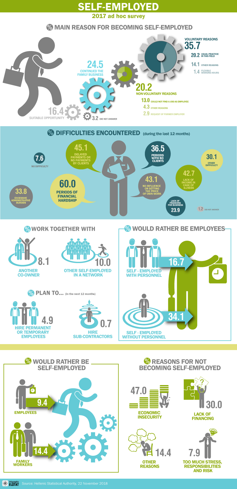 The Hellenic Statistical Authority (ELSTAT) announces data on Αd hoc Module on Self Employment (2017)