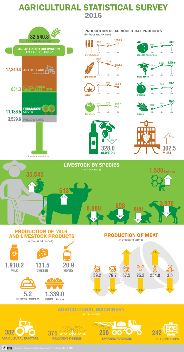 The Hellenic Statistical Authority (ELSTAT) announces the final results of the 2016 Annual Agricultural Statistical Survey.