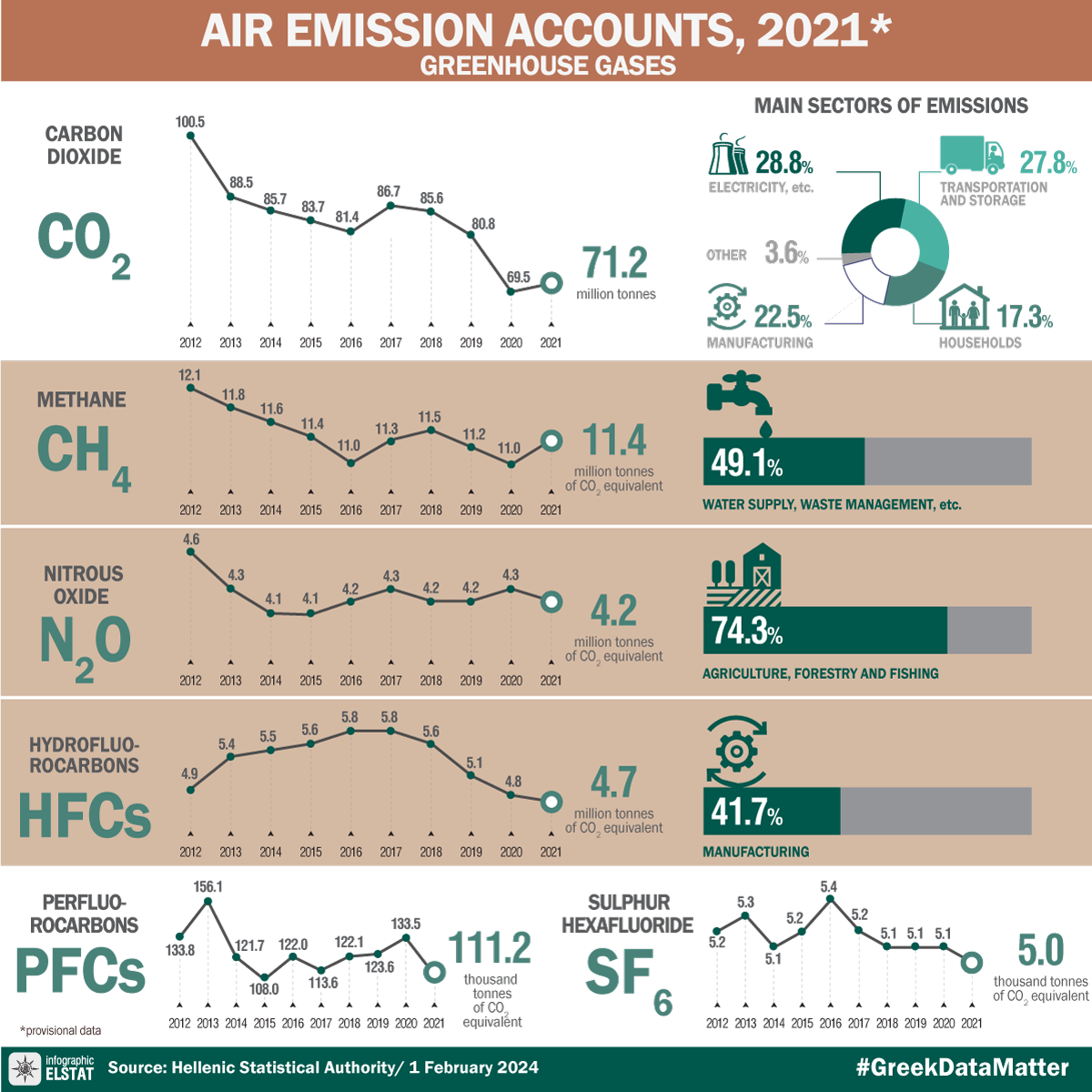 ELSTAT, Air Emission Accounts (AEA). Release date: 1.2.2024