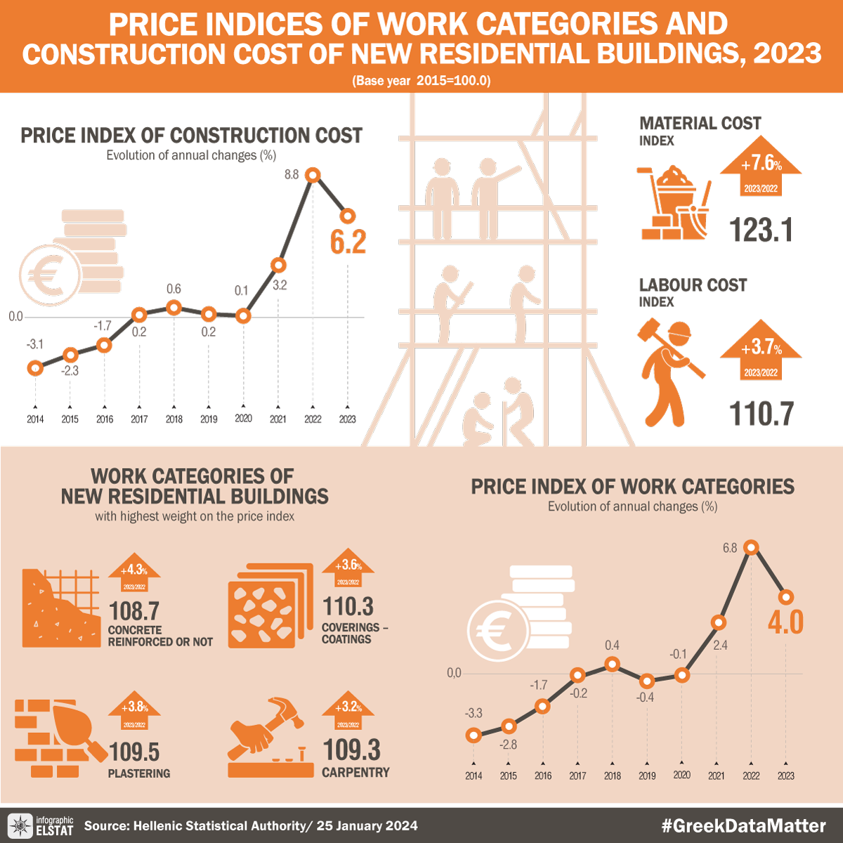 ELSTAT, Price Indices of Work Categories and Construction Cost of New Residential Buildings. Release date: 25.1.2024