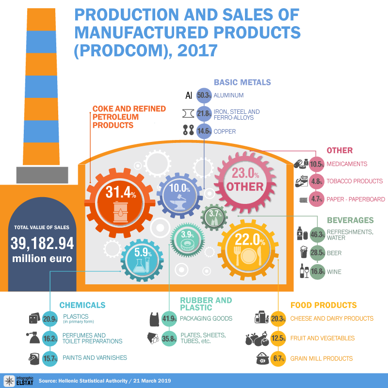 ELSTAT, Manufacturing products (PRODCOM survey) :Production and sales. Release date: 21.3.2019