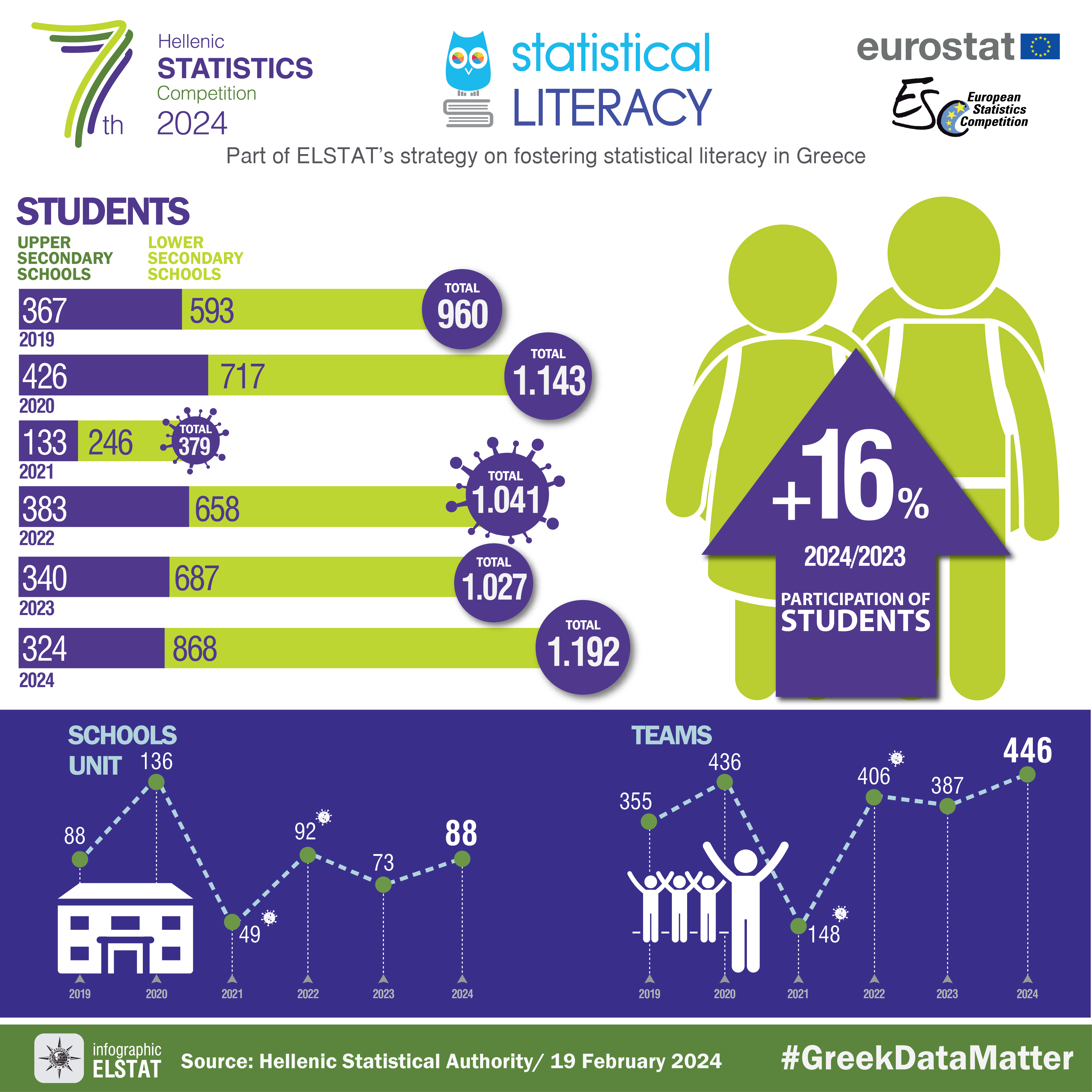The Hellenic Statistical Authority (ELSTAT), in the framework of the programme for “Fostering Statistical Literacy in Greece”, is organising, for the seventh time, the "Hellenic Statistics Competition", co-financed by the European Union.
