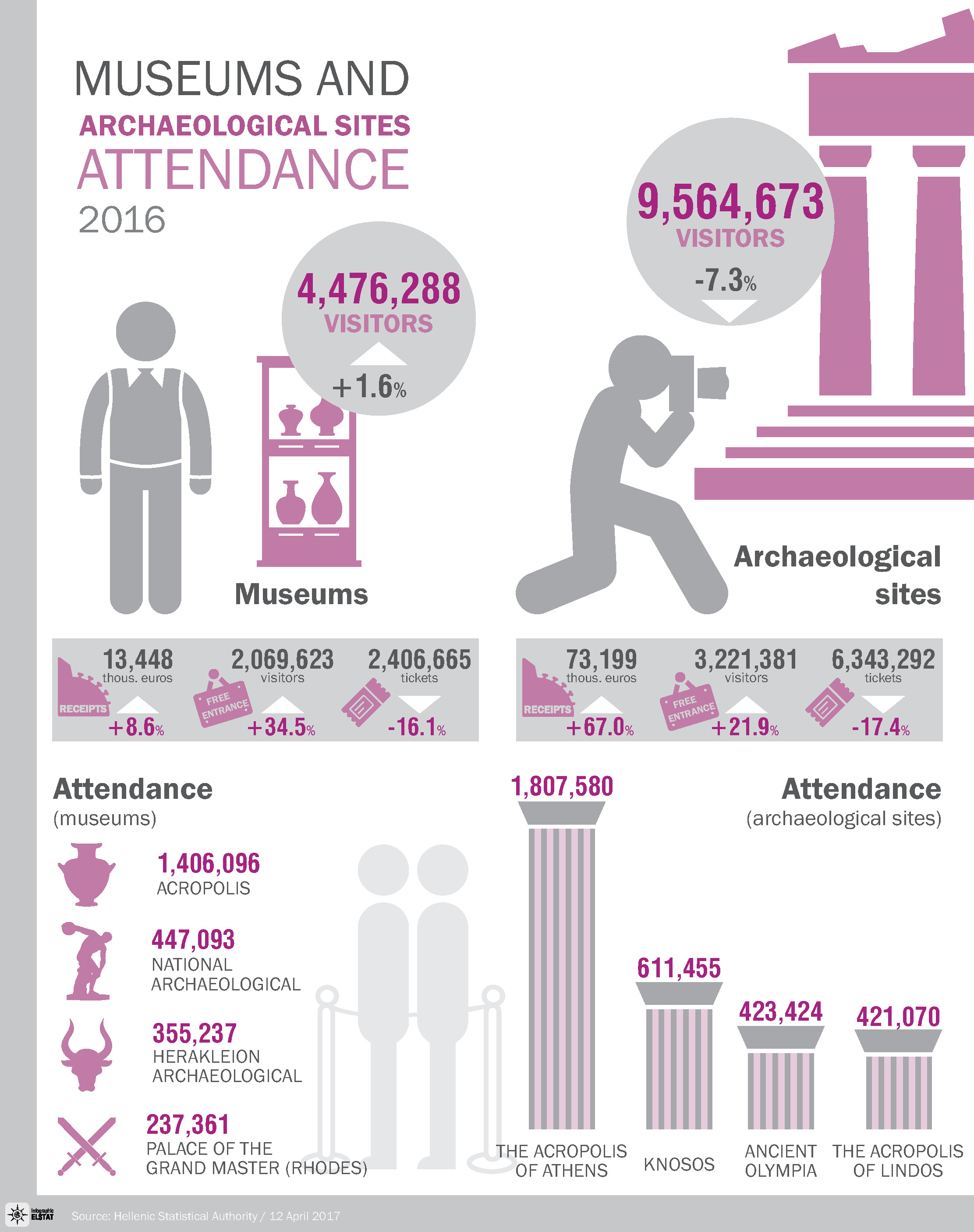 ELSTAT, Museums and archaeological sites (visitors ,receipts). Release date: 12.4.2017