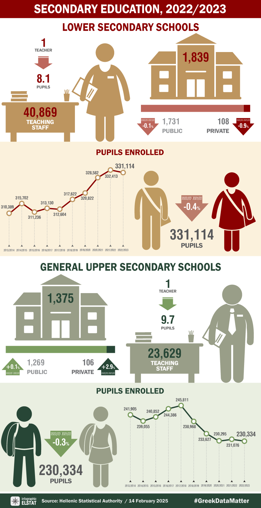 ELSTAT, Secondary General and Vocational Education. Release date: 14.2.2025